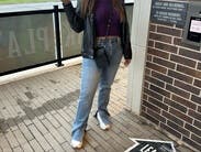 I loved these! The bottoms add some interest and the color was great. I am quite tall and you can see they are fairly long in length. High rise and didn’t do that annoying tight-on-the-thighs, but loose-on-the-waist thing that many jeans do! They stretched out a bit over the course of the day. They would work with almost all tops/sweaters (same for shoes)! Loved them so much, I bought a pair!
