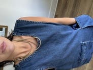 Shapeless dress. Even with a belt it was too big. Very heavy denim. Backless back which was t expected with black ribbon tie at collar
