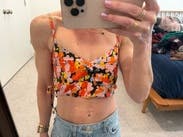 A charming day-to-night pick, this Plan C floral crop top features dainty straps and an adjustable drawstring hem.