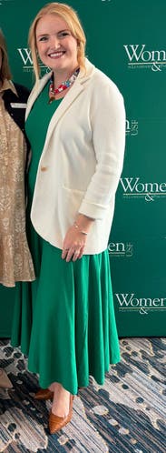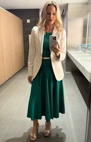 Great green dress! Paired perfectly with this Veronica beard RTR Blazer