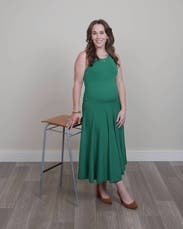 The drop waist didn’t look great while pregnant but I plan to rent again after baby arrives. Thick knit but still flowy and stretchy. Great coverage at the top and perfect length.