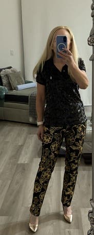 I wore this for my stay at home New Year's Eve celebration. It was a fun and comfortable look. Perfect for a casual occasion when you want to add a little flare. Happy 2022 everyone!