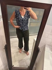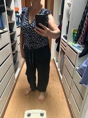 Bought it because I liked how versatile and cute it is. I felt like it can be dressed up or down and the drawstring waist gave it a flattering shape. Work, date night, with shorts to the park- you name it! It did have a little too much cleavage with a normal bra so I preferred the look of a bralette. It’s a little cropped with a longer torso so needed high waisted shorts/pants with it.