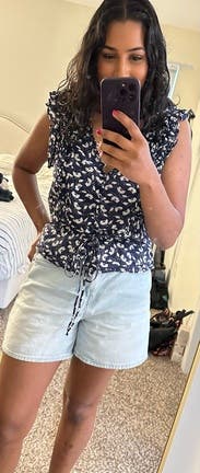 Loved wearing this with jeans and shorts. The drawstring waist adds some nice shape to it.