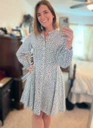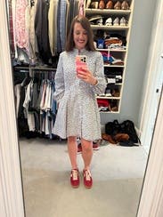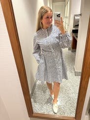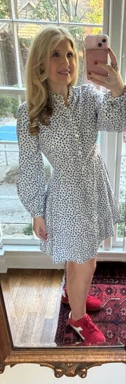 This shirt-dress is an easy throw on and can be styled many ways. Need a cowgirl moment? Metallic or cream cowboy boots would be darling. More of a city vibe? Sneakers and a denim jacket would make brunch or errands chic. I wore it to the office with loafers and a headband. I would say “cute” but nothing truly special. I would size down next time, as the dress was big in the ribcage/waist. If I had been thinking more before I left the house, I would have belted it. I will say this definitely is on the preppy/suburb side of things, style wise. But I guess that tracks for RL. Brunch, errands, office - this is a winner.