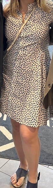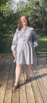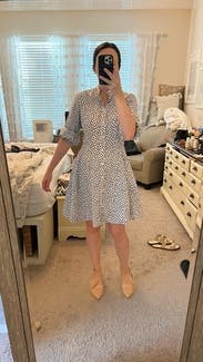 This was so comfortable - loved the pockets! It was a smidge big but I didn’t mind. Pretty pattern and classic look. I loved it for my conference.