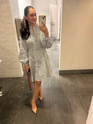 I had to white knuckle returning this one I wanted to keep it so badly! Loved wearing it, great lightweight and breathable while still long sleeves to keep the spring chill off. The pattern is interesting without overwhelming. Fuller skirt is easy to wear for all body types.