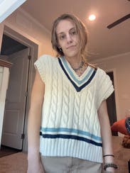 Loved this classic cable vest. Modern twist with cap sleeves and slightly oversized. Will rent again