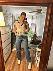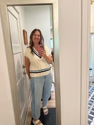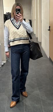 I wanted so badly to like this polo vest but I just couldn’t figure out how to style it. I don’t love with these light wash jeans, but also didn’t like dark wash. Tried to go with a pencil skirt, still didn’t look right. Best of luck to you on your styling efforts!