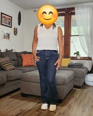 This was an exact fit. I wish I would have sized up, but it was okay. It’s a bit cropped, so good thing I wore it with a high-waisted skirt for work.