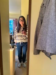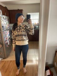 wore this nonstop during a ski trip. cozy sweatshirt that layers well under jackets