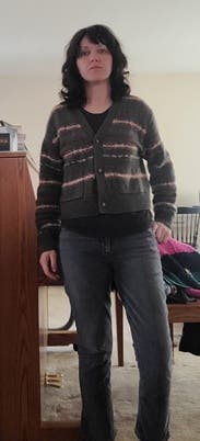 Definitely a cropped fit but even in colder temps, it was comfortable. Very cabin-chic
