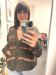 Perfectly nostalgic and charming. This is a boxy cut cardigan which makes it more cool and less cutsie, and I loved the fit. I mostly threw it on with denim and added a black bow in my hair to lean into the cottage core vibes. Warm, not scratchy, and feels high quality.