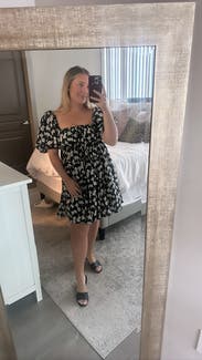 I wore this dress for a casual birthday party at a wine bar and it was perfect. So comfortable, flowy and perfect for spring/summer vibe! The waist was a little roomy so I added a little belt to compliment my waist line. I gots lots of compliments and would definitely rent again!