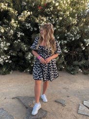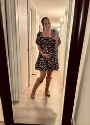 This dress is a great basic for your closet. You can dress it up or down and it is a great length! Its not too revealing so its great for family settings as well.