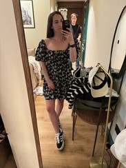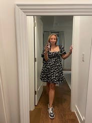 I wore this item a handful of times while renting because it was such an easy throw on. The fit is great, love the double waistband - makes it so flattering on the waist. The sleeves are a statement but can still dress down with sneakers. Loved this dress!