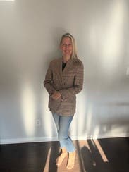 Cool oversized boyfriend look. Light fabric,, great for East coast fall weather. Unlined.