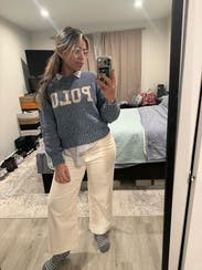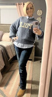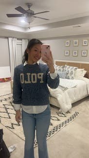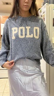Was more on the fitted side but would have been cuter oversized -size up on al RL sweaters