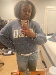 I love oversized cozy sweaters. Had to rent this when I saw the pretty blue color. This wasn’t as oversized as I thought it would be but I still loved it! It fit perfectly and I wore it multiple times.