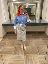 This shirt was comfortable & flattering! Easy to wear to work, tossed under a blazer or sweater or by themselves! I wore them with both "fancy" joggers and high-waisted cream work pants