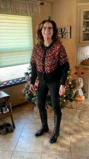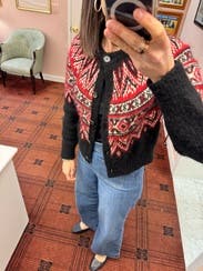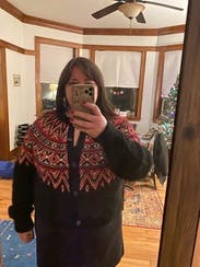 loved this sweater. so cute and festive - and very warm, perfect for NYC weather! took off one star because it is a little itchy with nothing underneath, but with a tee or long sleeve, it's perf.