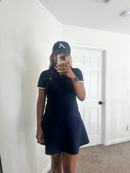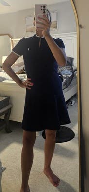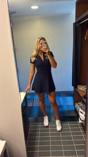 Wore this to the US open. It was very cute but fabric was thick and hot. Also, felt a little bit long for the style of dress. I am 5’6 for reference and felt it could be a little shorter!