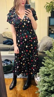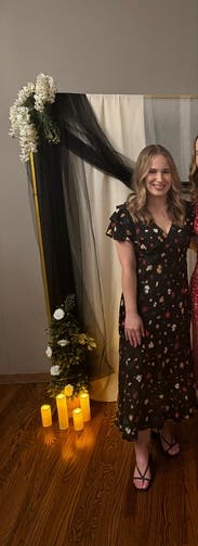 I picked out this dress to wear for a friends casual March wedding. This dress was perfect for the occasion and would look great dressed up or down. I am 5’3 and 150 lbs and the size 4 was a little big around the waist but fit perfectly otherwise.