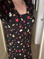 Loved this dress. Flattering, easy to wear, comfortable and flattering but pretty. I'm a c cup and didn't totally fill the bust but didn't matter because of the print you can't tell. Went dancing in it, so you can easily move in it. Only negative: the zip sticks out on the hip instead of lying flat but couldn't really tell.