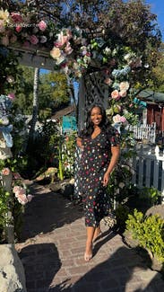 The floral made it fem and the fit of the dress was classic. Black floral was so versatile.