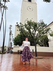 Wore this for photos with a skirt, then moved into date night w jeans - loved it and it stayed around my shoulders all evening instead of riding up. Would rent again.