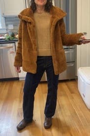 I wore this item a lot - with jeans, over dresses. It is a bit boxy so I belted it when wearing it with full skirts to give me some form. It is high quality and warm. Will rent again.