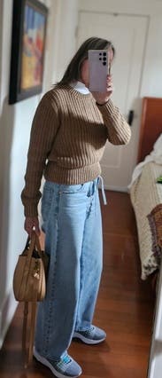 If you’re on the fence just get it! It was so cute on despite being a basic tan sweater. Very versatile and fit great!