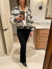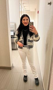 Comfy and cozy, I wore this sweater a few times while I had it. I love the pattern and how easy it is to style. I wore it to work on one I with jeans and boots with a bodysuit underneath for a winter white look. I wanted to keep this one and will definitely rent again!