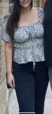 I absolutely loved this top and if it weren’t $300 I’d buy it. What you can’t really tell from the photos is that there are 3 adjustable ties, above the chest, under the chest, and at the waist, making this top truly customizable. I chose to wear it on my shoulders but could also definitely wear it off the shoulder which was cute too. Bras won’t work well with this for many people, but the adjustability made everything feel tight and secure. Highly recommend even if you have a larger chest like I do.