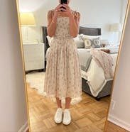 I love, love, love this dress! If it wasn’t so expensive, I would have bought it. I wore it to my friend’s garden party and it was perfect for that setting. It fit great, the bodice is stretchy and it has tie straps which are fully adjustable. Note that the straps were tricky to tighten properly on my own, so it’s easier if you have someone to help you.