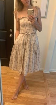 This dress was a favorite! Fit perfectly and I loved the amount of flow of fabric in the skirt and the pockets! This is a very simple but sweet dress! I received so many compliments!