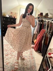 Felt like a little house on the prairie dress. Super cute and comfy. Wore with sandals and a jean jacket at night. Simple and stylish total would rent again