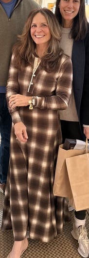 Such a great fall dress. I felt like it made me look 10 lbs thinner…without extra time at the gym! 😉. Can be dressed up or down…very comfortable. I did find the sleeves very slim…but they loosened up a bit throughout the day. Definitely rent this!