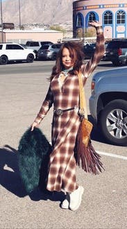 Sure I looked like i was ready to churn butter and milk goats, but who cares when the dress feels like flannel PJs! I loves wearing this dress! Styled with boots and denim jacket.