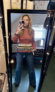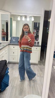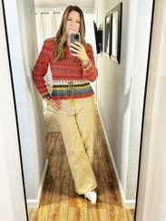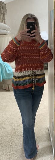 I loved this top! I’m in my mid-30s, and missed the fashion of the 70s (some styles then were great and some not so great). But this top is just cozy, with a pop of color, and gentle nod to the 70s styles. I wore these with some high rise bell-bottom pants and cute ankle boots, and I received so many compliments.