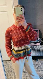 This was a fun sweater. Not too hot for Florida and very soft. I got a lot of compliments when I wore it. Fit is true to size. I would rent again.