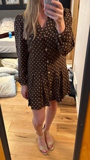 Got a lot of compliments on this which was fun because it’s not something I would normally wear. Wore it on vacation and was a great day dress with sneakers. Just know it is short! Had to wear shorts underneath to account for the wind.