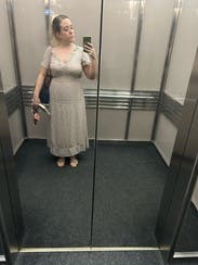 This may be my all time favorite rental and I’m so sad to send it back. Felt feminine and romantic and like I wanted to frolic in a field of wildflowers or something. I ordered a size up because that is what was available but I liked the extra room and the ties in the back allowed for a more fitted waist. Lovely silky fabric and a perfect length for my 5’7”.