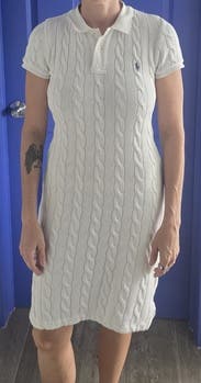 I loved this Polo dress! Soft cotton material, hugged my curves in all the right areas. I paired this dress with some air forces for Sunday brunch! Casual cute dress, fit true to size.