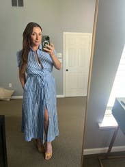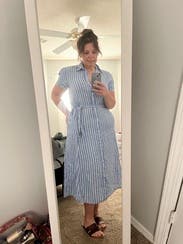 Perfect dress for our baby moon. Wore it to dinner on the beach and it was comfy and breathable. Ended up wearing it again another day during the day and made it more casual with sneakers. I wish I could buy this dress.