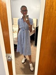 This is the perfect summertime dress. It gives East coast preppy vibes, great with a hat and sandals.
