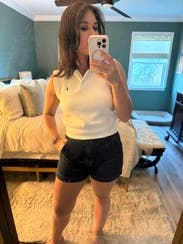 I liked the fit of the top, but I wish I would have sized up for a more casual look. I would have given a higher review but I didn’t love the dull shade of white. It seemed a little on the dingy side when I was hoping for a brighter white. Otherwise a classic look.