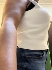 Cute crop. If you have a larger bust, I’m a DDD, the wide arm opening will expose your bra.
