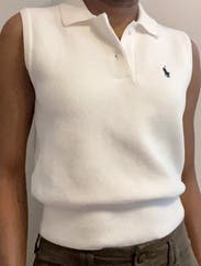 Polo Ralph Lauren’s Sleeveless Pullover offers a refined, tailored silhouette with a crisp collar and streamlined shape. Pair it with high-waisted trousers and loafers for a polished daytime ensemble.