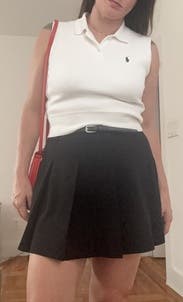 I wore this with a Thom Browne pleated skirt to the US open. It’s cute and preppy, but if you don’t want to show skin, pair it with something high-waisted